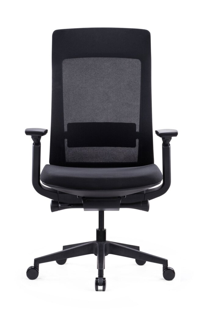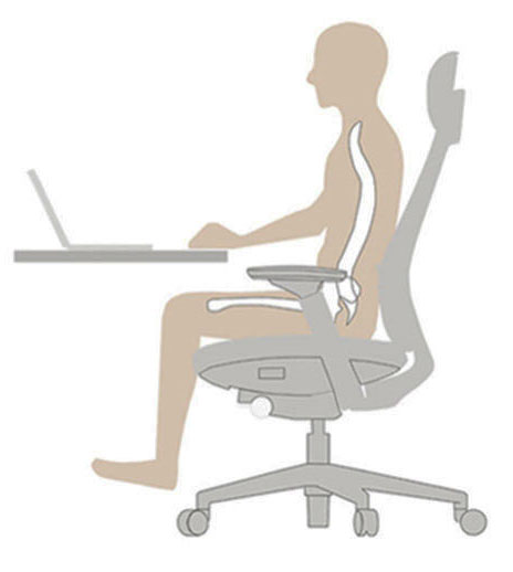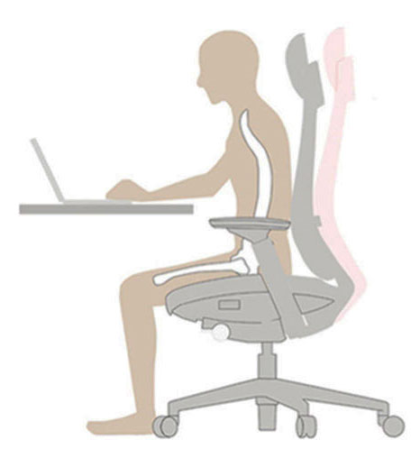 équipé d’une pente négative : l’assise est légèrement inclinée vers le bas (3°) afin de se rapprocher des courbures naturelles du dos. Grâce à cette inclinaison, le bassin bascule vers l’avant et retrouve sa position naturelle, comme en position debout.