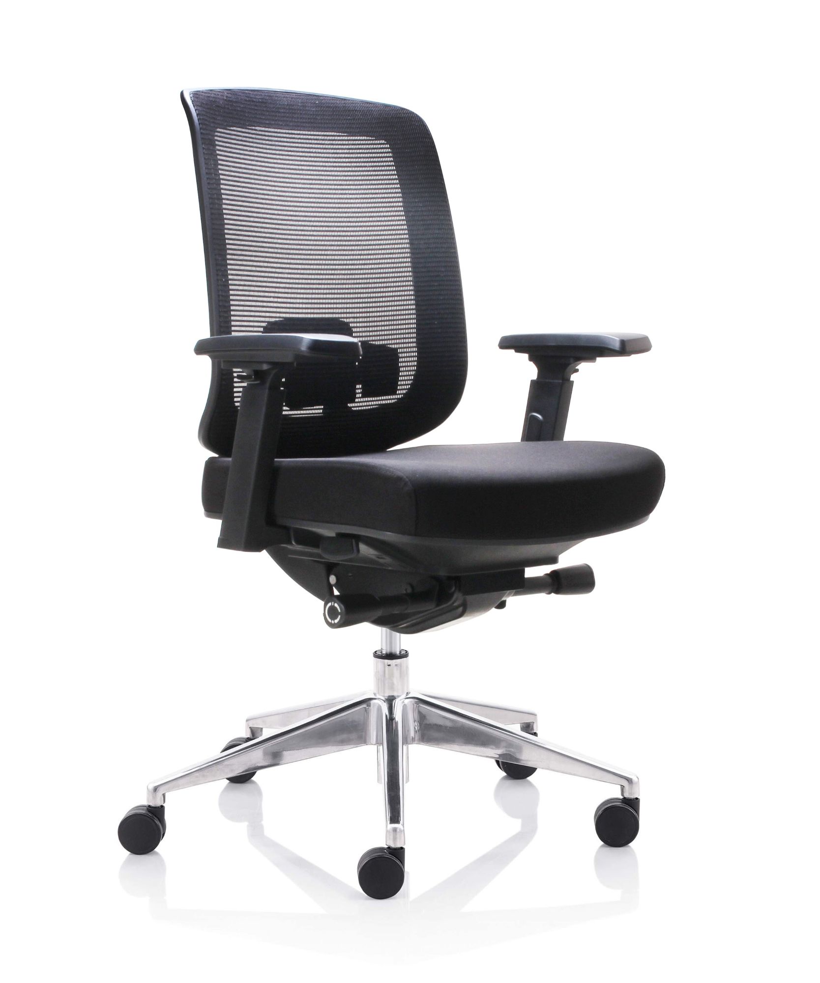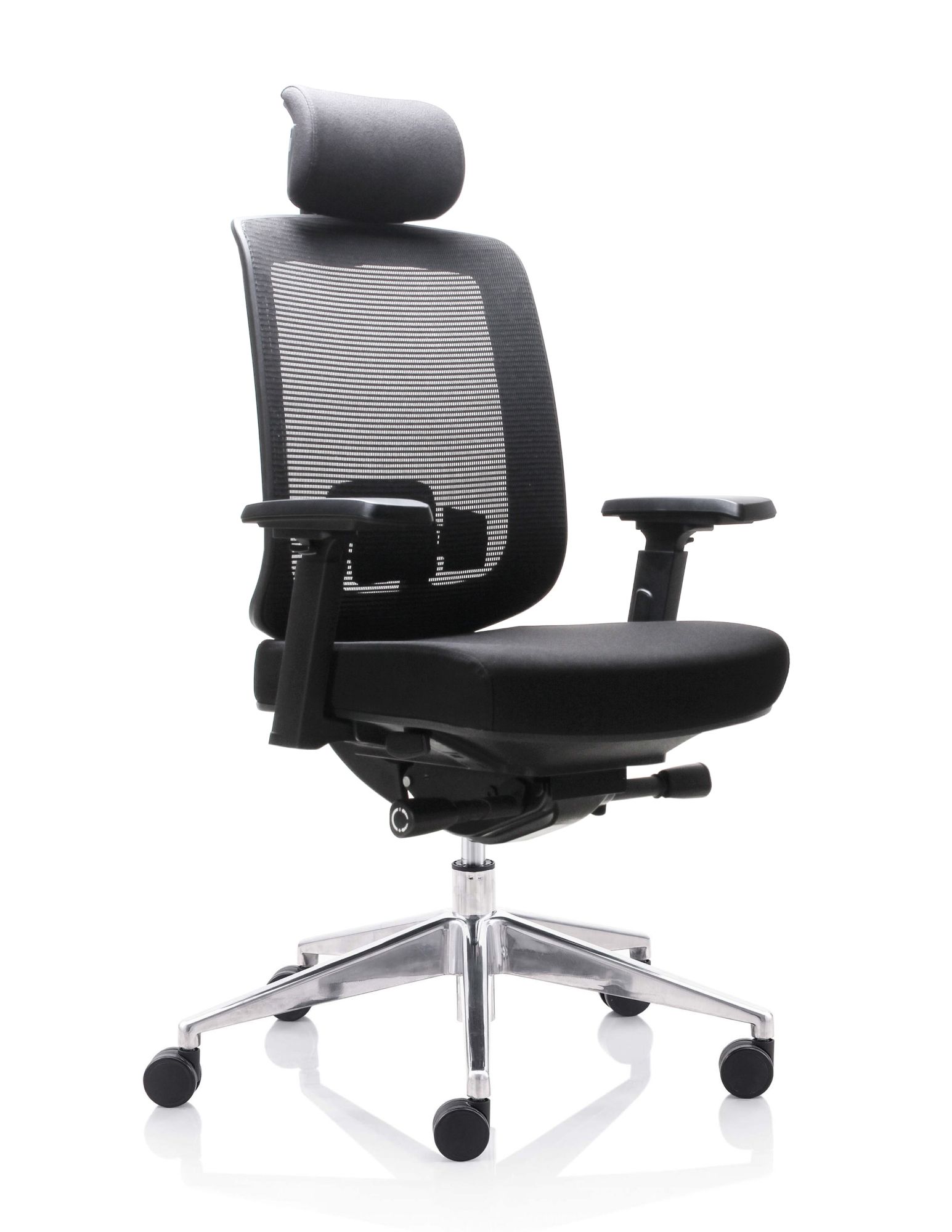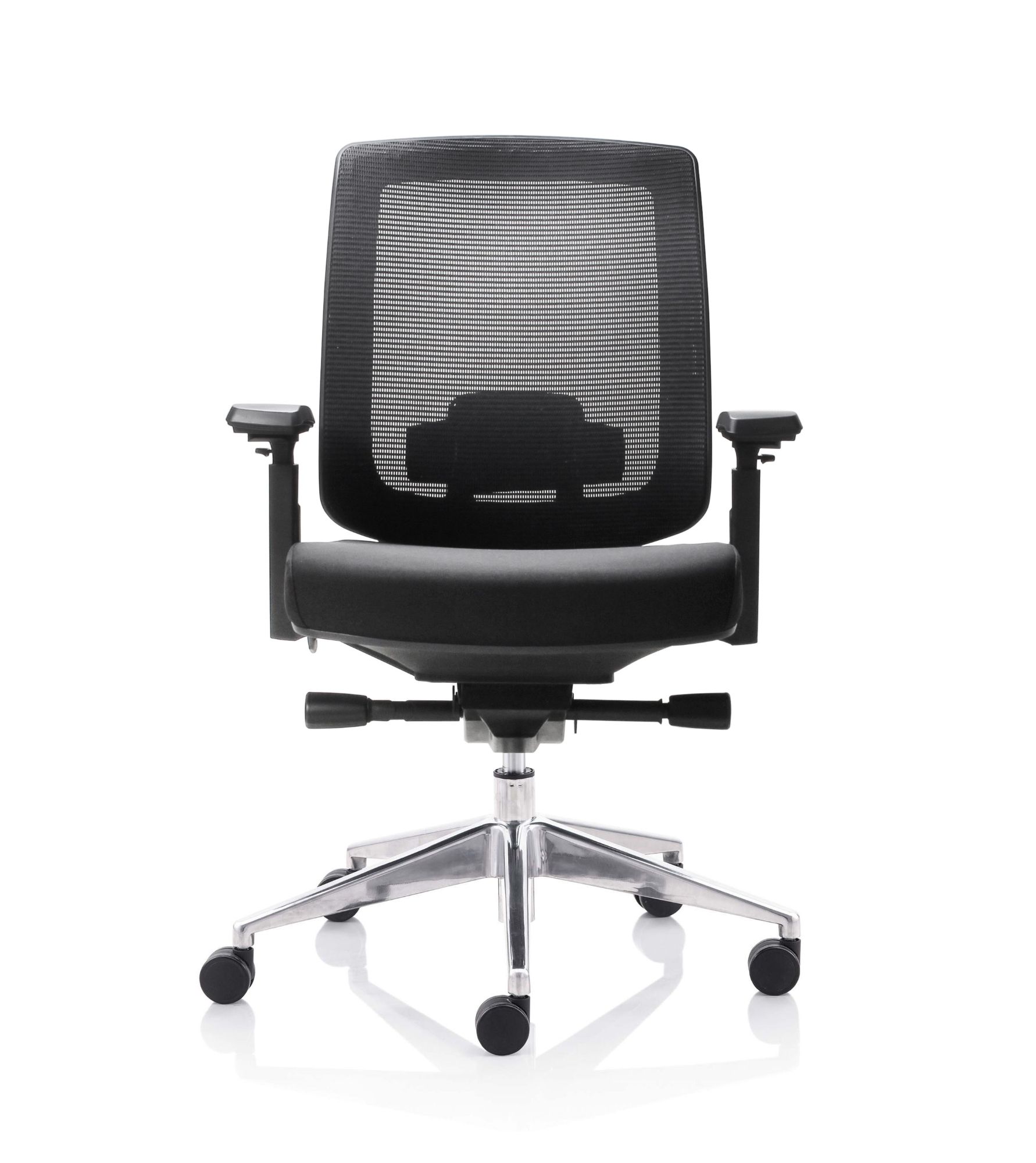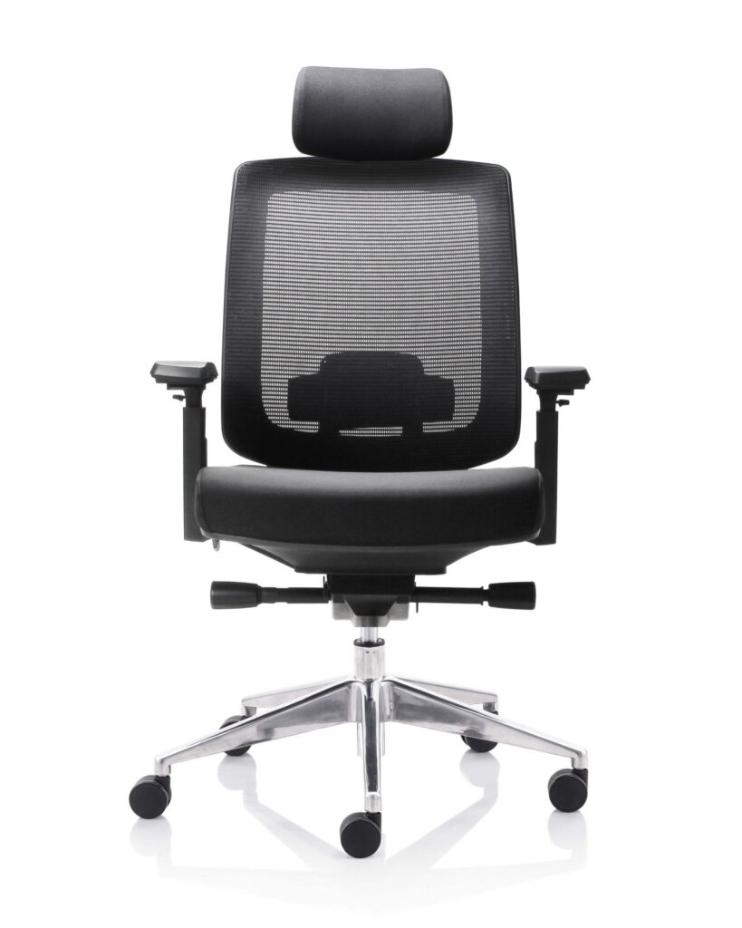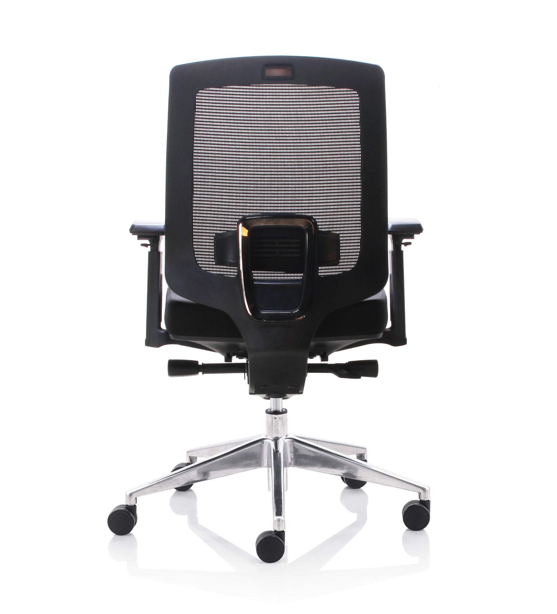 Fauteuil 501X Dossier / Têtière / Accoudoirs : Dossier en résille. Support lombaire réglable en hauteur. Têtière 3D réglable en hauteur sur 5 cm, profondeur et orientable en option. Accoudoirs 4D réglables en hauteur, largeur, profondeur et pivotants recouverts de polyuréthane. Assise : Assise en tissu noir Épaisseur de la mousse : 70 mm Densité de la mousse : 60 kg/m3 Peut supporter jusqu’à 135kg Réglage / Mécanisme : Mécanisme synchrone Suivi de chacun de vos mouvements Blocage de l’inclinaison du dossier dans 4 positions. Réglage de la hauteur de l’assise et de l’inclinaison du dossier par des manettes latérales. Réglage de la tension avec une manette latérale située sous l’assise. Ajustement de la profondeur d’assise sur 5 cm grâce à la translation. Vérin / Vérin / Piétement / Roulettes Vérin 85/60 mm Class 4 Base en aluminium 700 mm Roulettes nylon 60 mm Fiche technique en PDF Certifications : Fiche technique en PDF