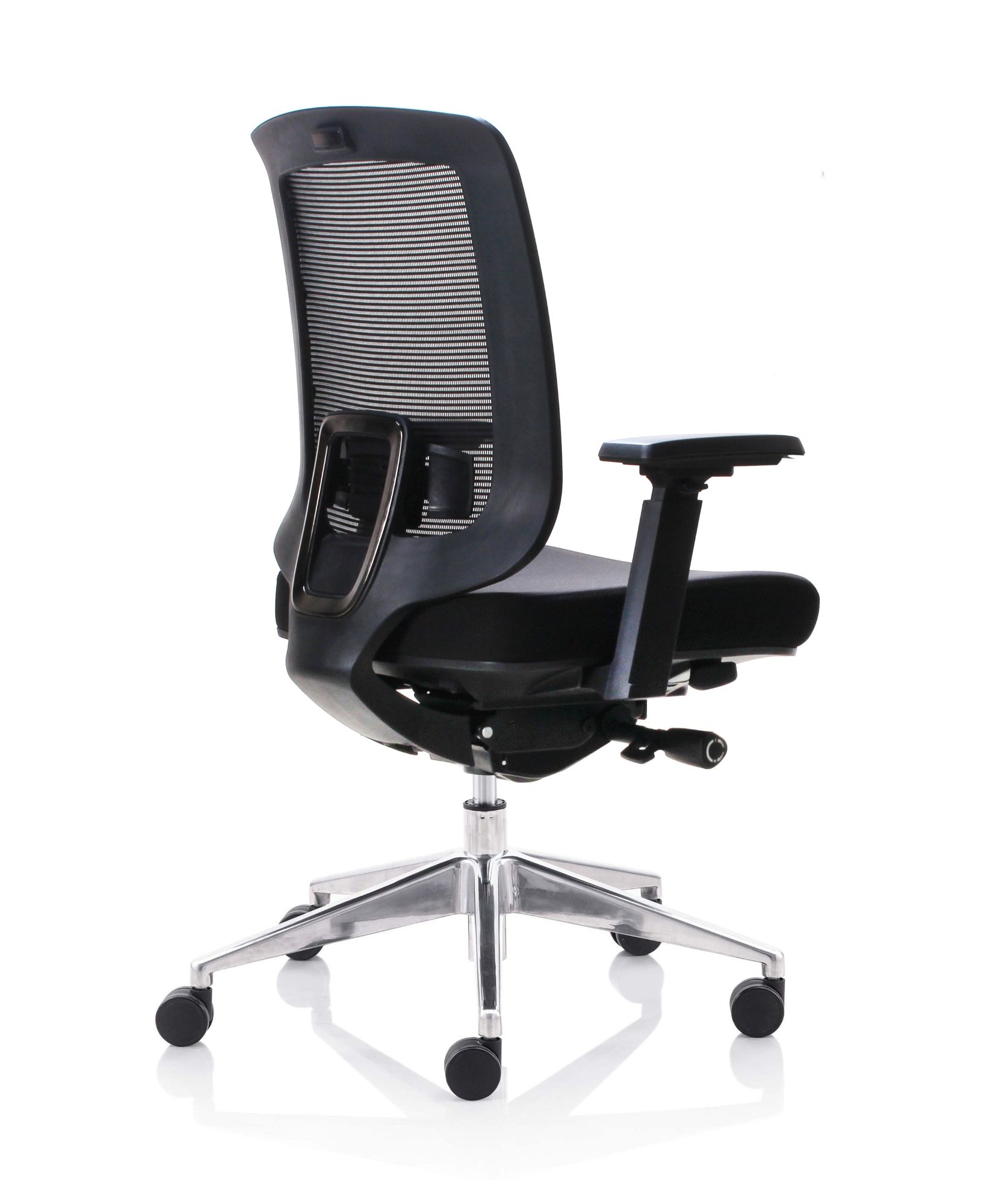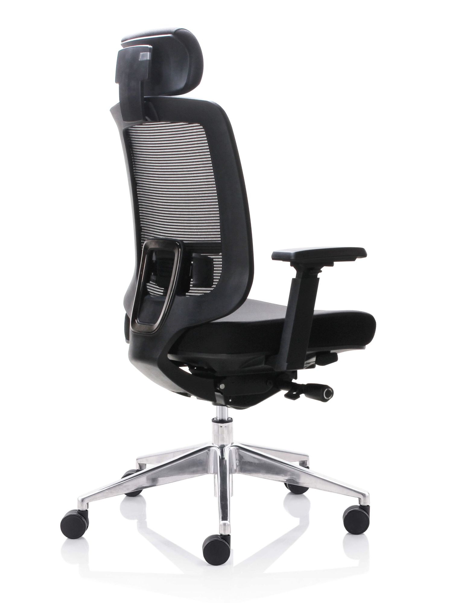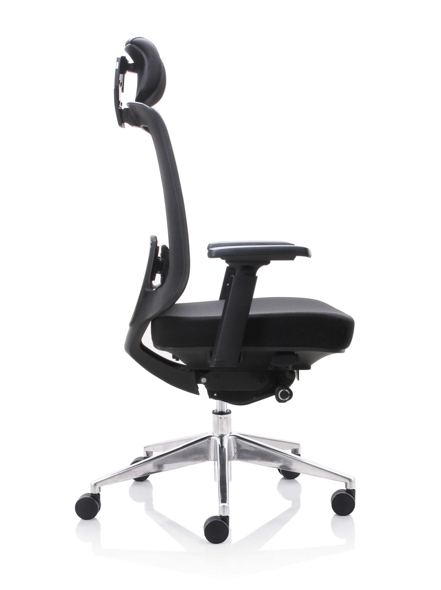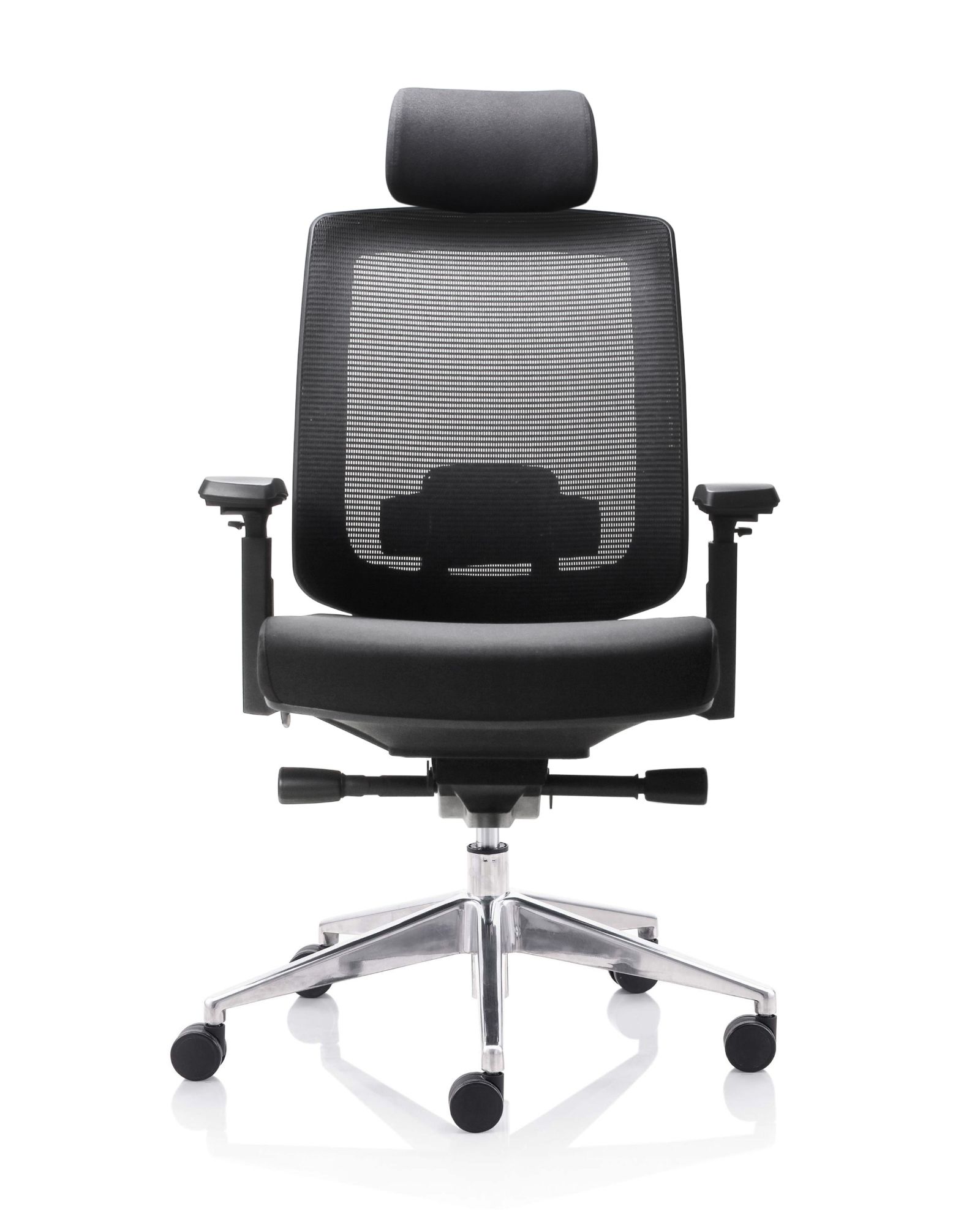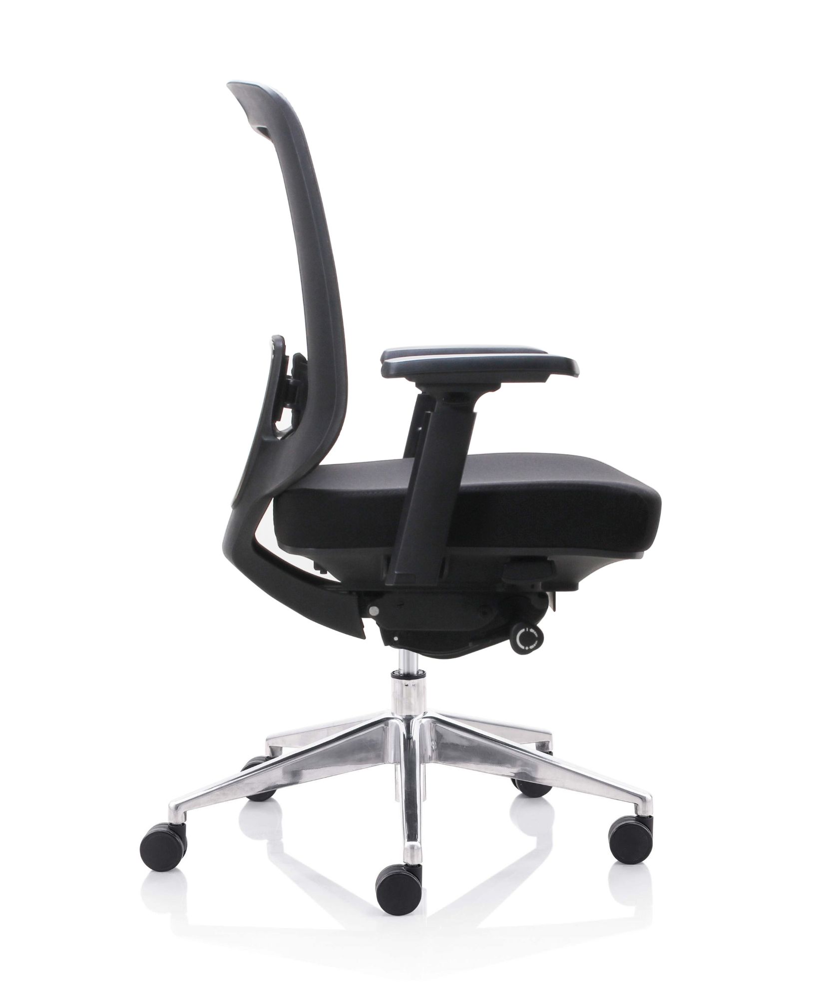 Fauteuil 501X Dossier / Têtière / Accoudoirs : Dossier en résille. Support lombaire réglable en hauteur. Têtière 3D réglable en hauteur sur 5 cm, profondeur et orientable en option. Accoudoirs 4D réglables en hauteur, largeur, profondeur et pivotants recouverts de polyuréthane. Assise : Assise en tissu noir Épaisseur de la mousse : 70 mm Densité de la mousse : 60 kg/m3 Peut supporter jusqu’à 135kg Réglage / Mécanisme : Mécanisme synchrone Suivi de chacun de vos mouvements Blocage de l’inclinaison du dossier dans 4 positions. Réglage de la hauteur de l’assise et de l’inclinaison du dossier par des manettes latérales. Réglage de la tension avec une manette latérale située sous l’assise. Ajustement de la profondeur d’assise sur 5 cm grâce à la translation. Vérin / Vérin / Piétement / Roulettes Vérin 85/60 mm Class 4 Base en aluminium 700 mm Roulettes nylon 60 mm Fiche technique en PDF Certifications : Fiche technique en PDF