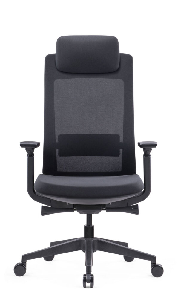 Fauteuil 501 Dossier / Têtière / Accoudoirs : Dossier en résille. Support lombaire réglable en hauteur sur 5 cm. Têtière en tissu réglable en hauteur sur 6 cm. Accoudoirs 3D réglables en hauteur, profondeur et pivotants recouverts de polyuréthane. Assise : Assise en tissu noir. Épaisseur de la mousse : 60 mm. Densité de la mousse : 60 kg/m3. Peut supporter jusqu’à 135kg. Réglage / Mécanisme : Mécanisme synchrone. Suivi de chacun de vos mouvements. Blocage de l’inclinaison du dossier dans 3 positions. Réglage de la hauteur de l’assise et de l’inclinaison du dossier par des manettes latérales. Réglage automatique de la tension. Ajustement de la profondeur d’assise sur 5 cm grâce à la translation. Vérin / Piétement / Roulettes Vérin 100/50 mm Class 4. Base en nylon 700 mm. En option : base aluminium. Roulettes nylon 60mm. Fiche technique en PDF Certifications : Dimensions Largeur dossier : 45 cmHauteur totale : 118 à 128 cmHauteur assise/sol : 45 à 55 cmDossier H65 cm Assise : L48 x P50 à 55 cmAccoudoirs : 16 à 24 cmLargeur totale : 70 cm Fiche technique en PDF