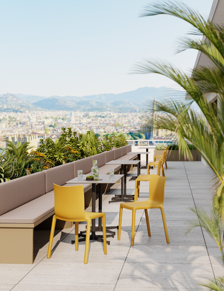 Sièges Sunny Une silhouette simple, élancée et élégante ! Usage intérieur/extérieur.En polypropylène.Empilable par 4Dimensions : L50 x H80,5 x P51cm Fiche technique en PDF Empilable par 5 Disponible en 5 coloris : Grey, Blanc, Taupe, Brique & Safran Fiche technique en PDF