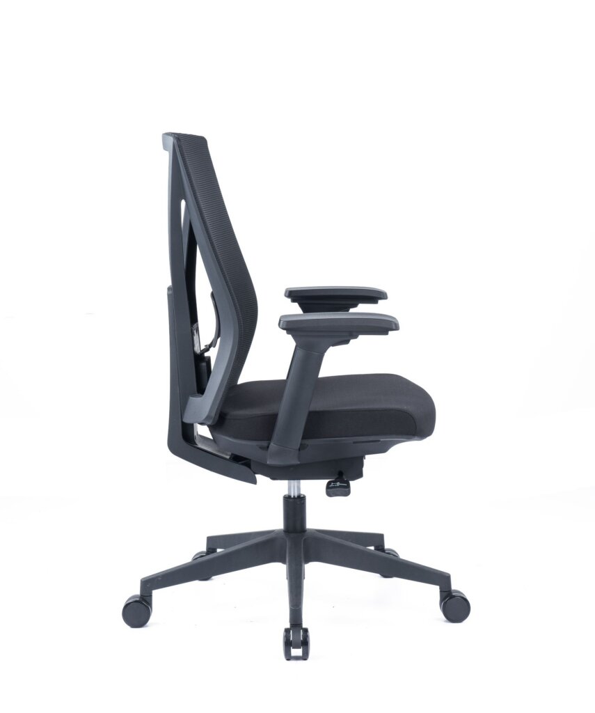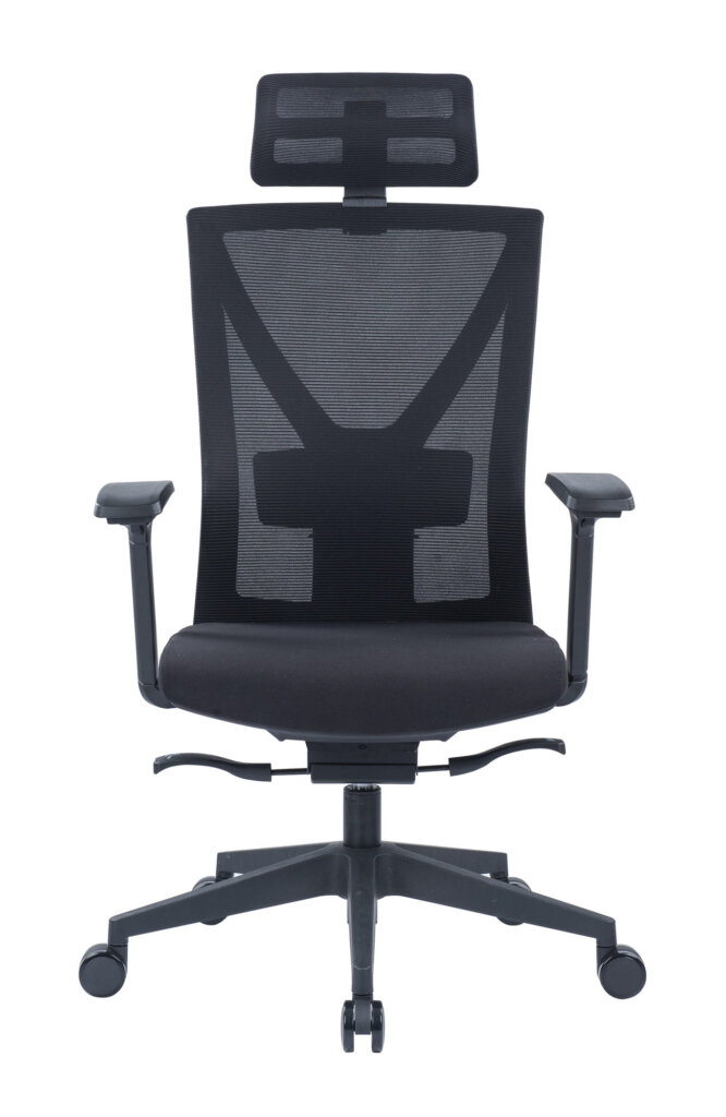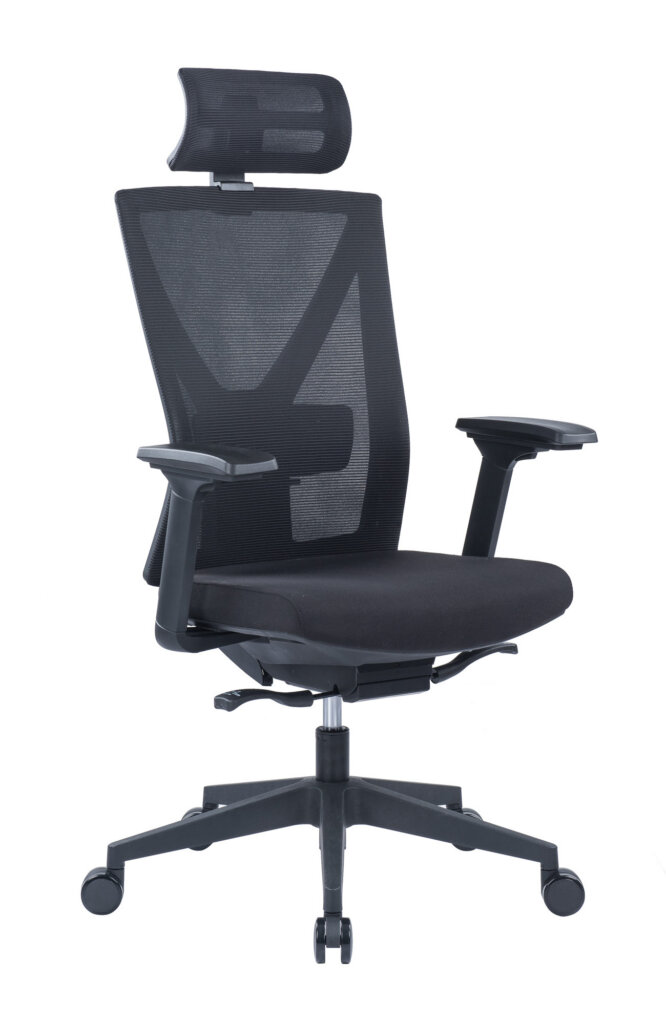 Fauteuil 250 Dossier / Têtière / Accoudoirs : Dossier en résille réglable en hauteur. Support lombaire réglable en hauteur. Têtière réglable en hauteur en option. Accoudoirs 3D réglables en hauteur, profondeur et pivotants recouverts de polyuréthane. Assise : Assise en tissu noir. Épaisseur de la mousse moulée : 70 mm. Densité de la mousse : 55kg/m3. Peut supporter jusqu’à 135kg. Réglage / Mécanisme : Mécanisme basculant décentré. Suivi de chacun de vos mouvements. Blocage de l’inclinaison du dossier dans 4 positions. Réglage de la hauteur de l’assise et de l’inclinaison du dossier par des manettes latérales. Réglage de la tension automatique et ajustement de la profondeur d’assise grâce à la translation. Vérin / Piétement / Roulettes Vérin 100/40mm Class 3. Base en nylon 680 mm. Roulettes polyuréthane 60mm. Fiche technique en PDF Certifications : Fauteuil 250 avec têtière Fauteuil 250 sans têtière Fiche technique en PDF