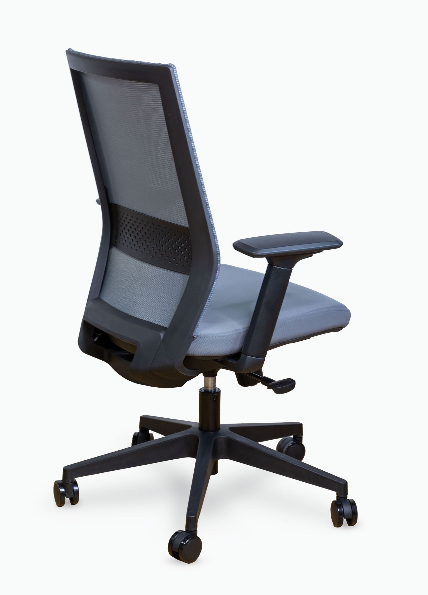 Fauteuil 240 Dossier / Accoudoirs : Dossier en résille noire avec support lombaire réglable en hauteur. Accoudoirs 3D en polyuréthane. Assise : Assise en tissu avec mousse moulée. Epaisseur de la mousse : 50 mm. Densité de la mousse : 40 Kg/m3. Peut supporter jusqu’à 135kg. Réglage / Mécanisme : Mécanisme synchrone. Suivi de chacun de vos mouvements. Blocage de l’inclinaison du dossier dans 3 positions. Translation d’assise permettant le réglage de la profondeur de l’assise. Vérin / Piétement / Roulettes Vérin 100/40 mm Class 3. Base 680 mm et roulettes 60 mm nylon. En option : base aluminium. Fiche technique en PDF Certifications : Fauteuil MT240 Noir Fauteuil MT240 Gris Fauteuil MT240 Noir Fauteuil MT240 Gris Fiche technique en PDF