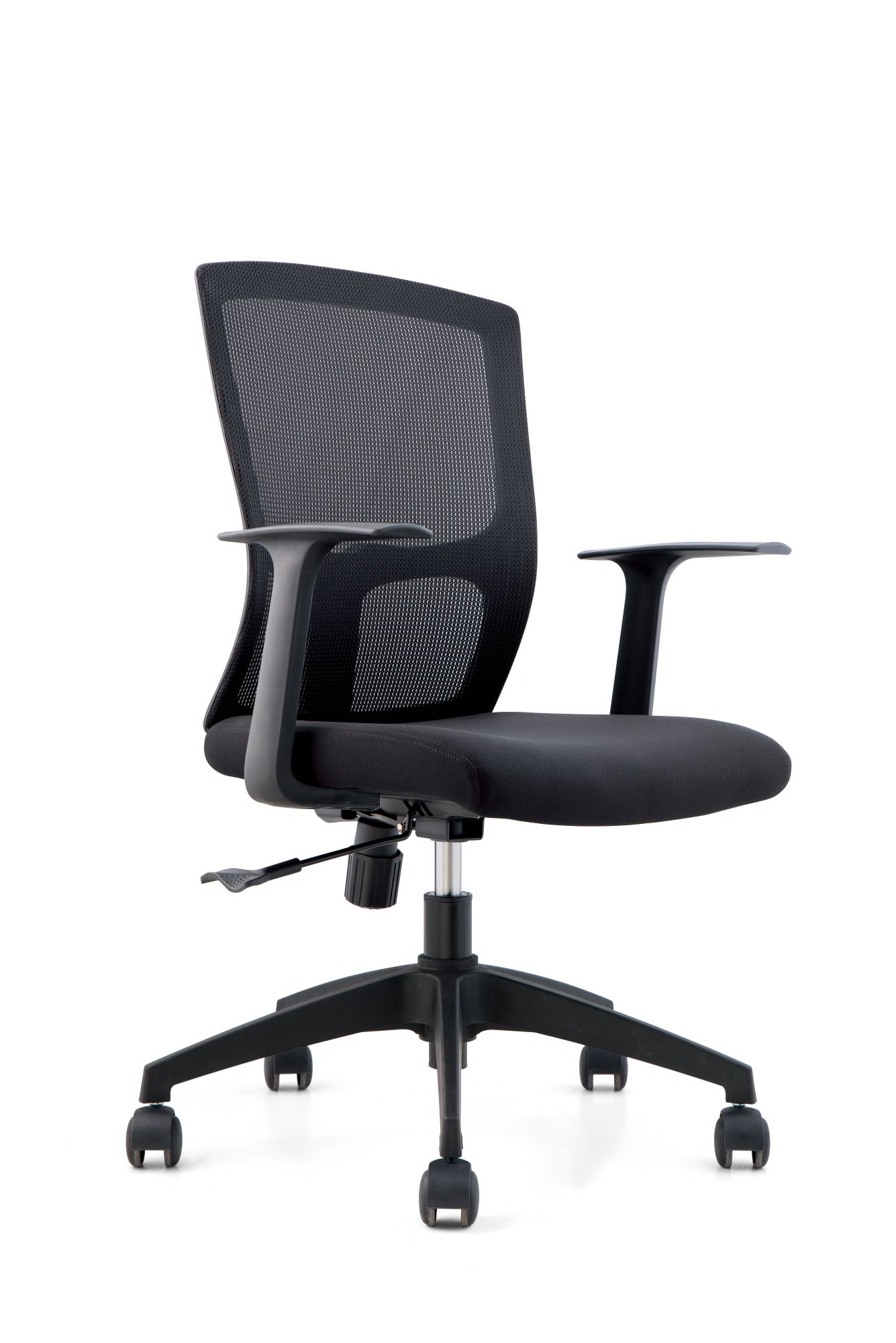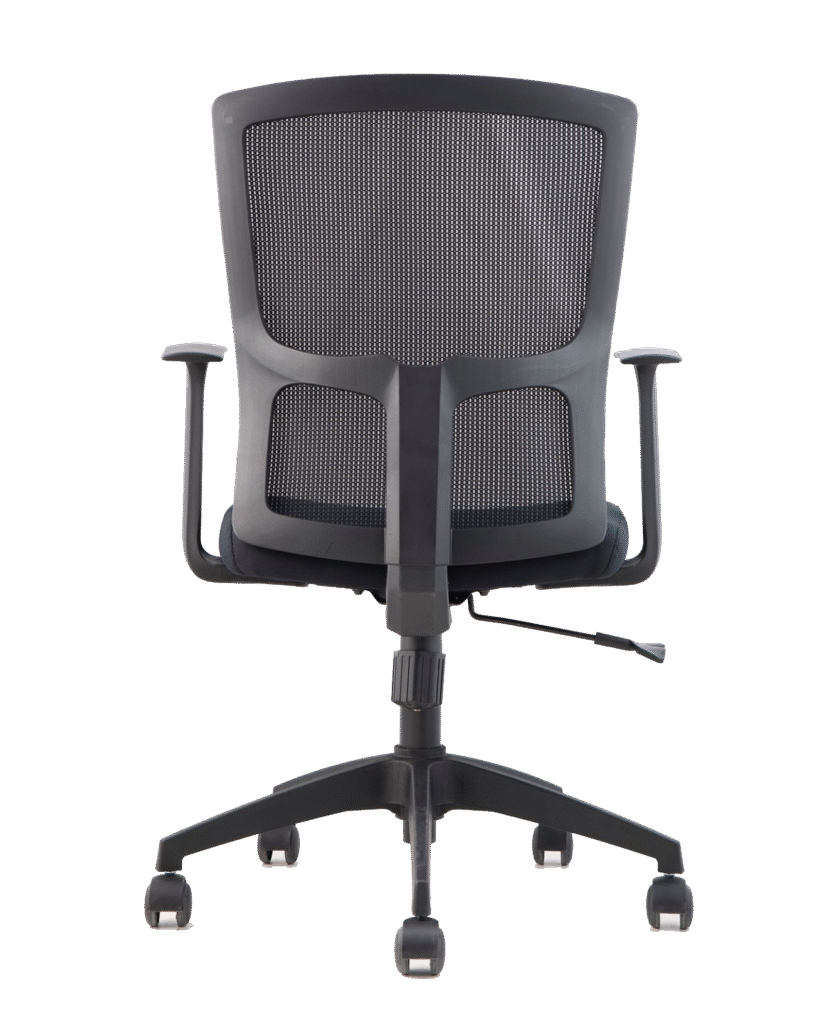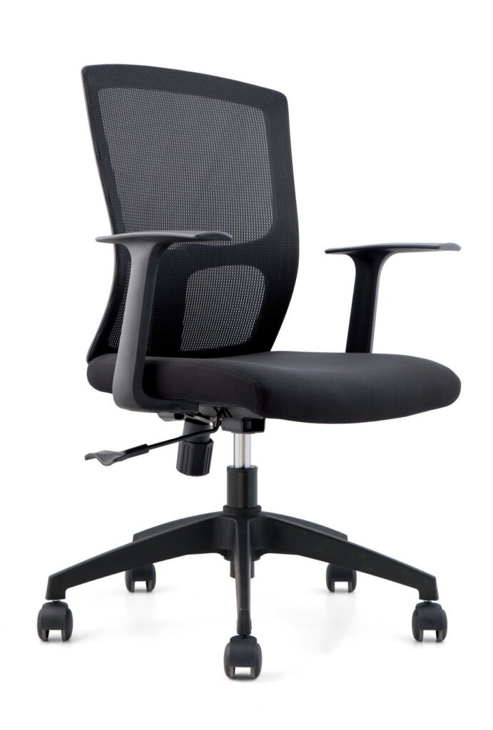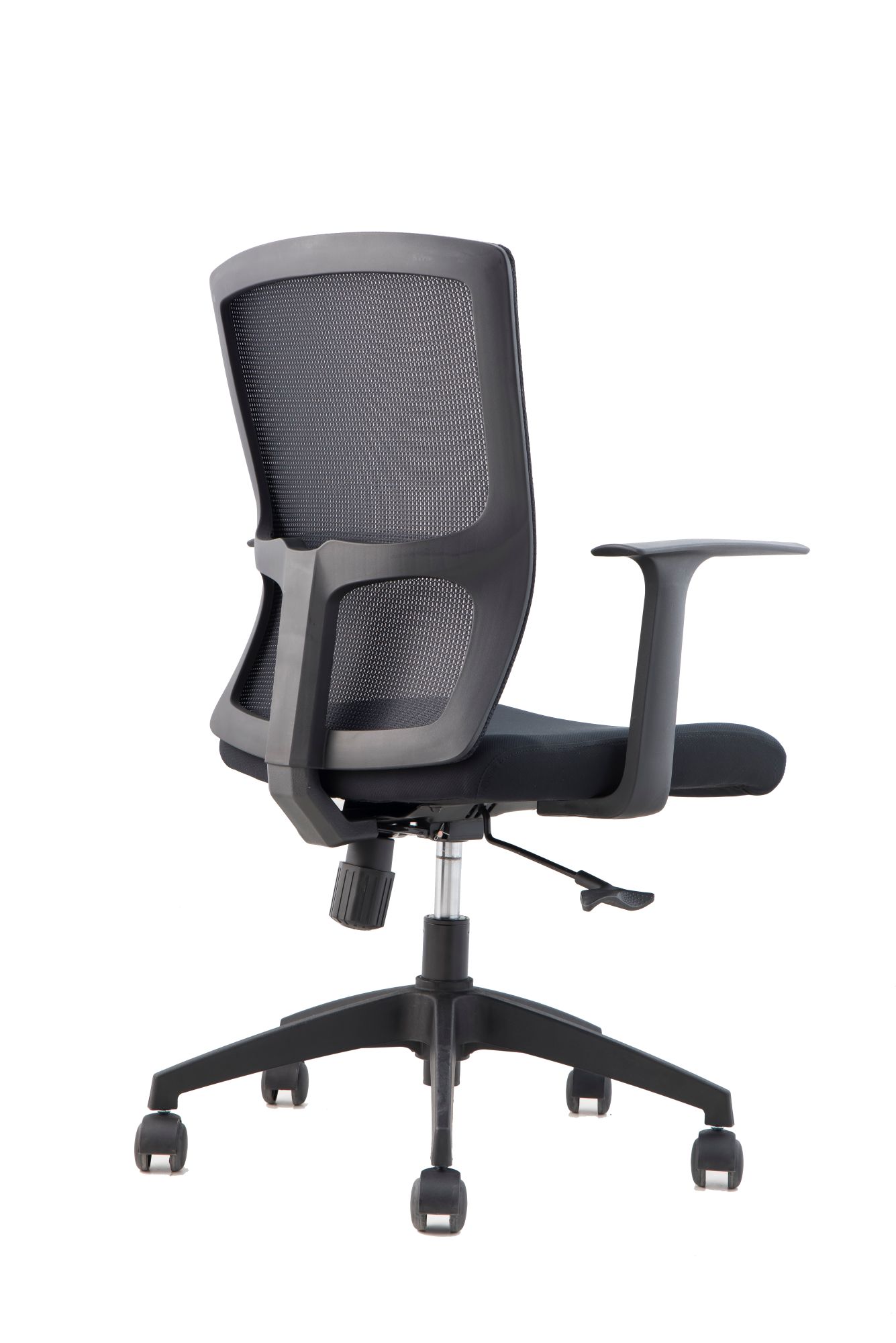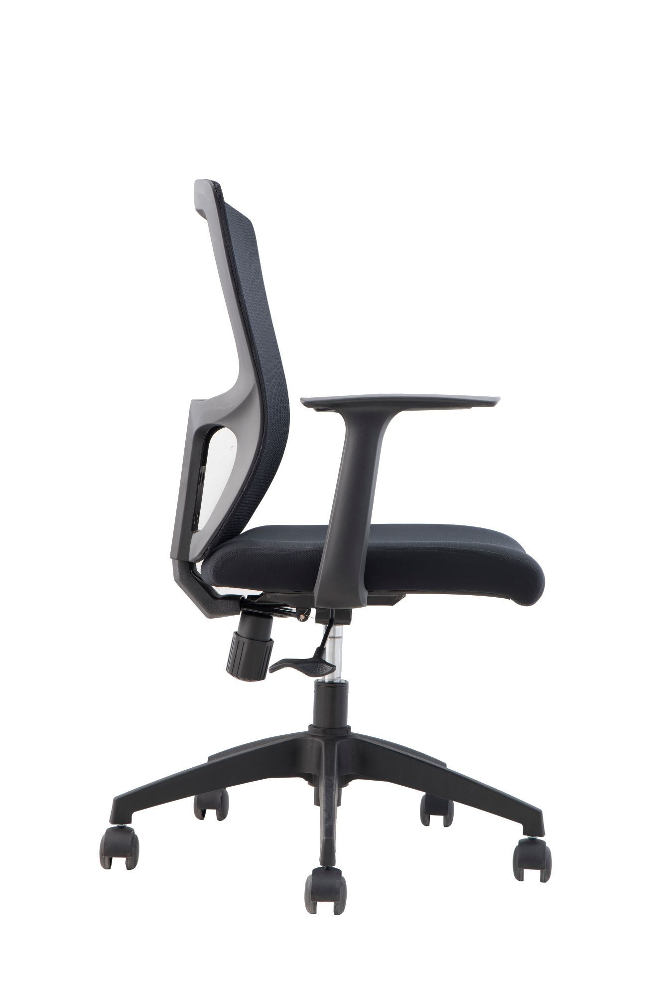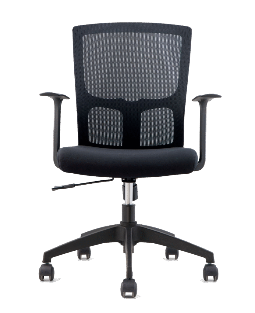 Fauteuil 183 Dossier / Accoudoirs : Dossier en résille noir. Accoudoirs fixes en polypropylène. Assise : Assise en tissu noir. Épaisseur de la mousse : 50 mm. Densité de la mousse : 45 kg/m3. Peut supporter jusqu’à 135kg. Réglage / Mécanisme : Mécanisme basculant centré. Blocage du dossier en position libre ou droite. Possibilité de régler l’intensité du basculement et la hauteur du siège. Vérin / Piétement / Roulettes Vérin 100/50 mm Class 3. Base nylon 640 mm. Roulettes 50 mm en nylon. Fiche technique en PDF Certifications : Fiche technique en PDF