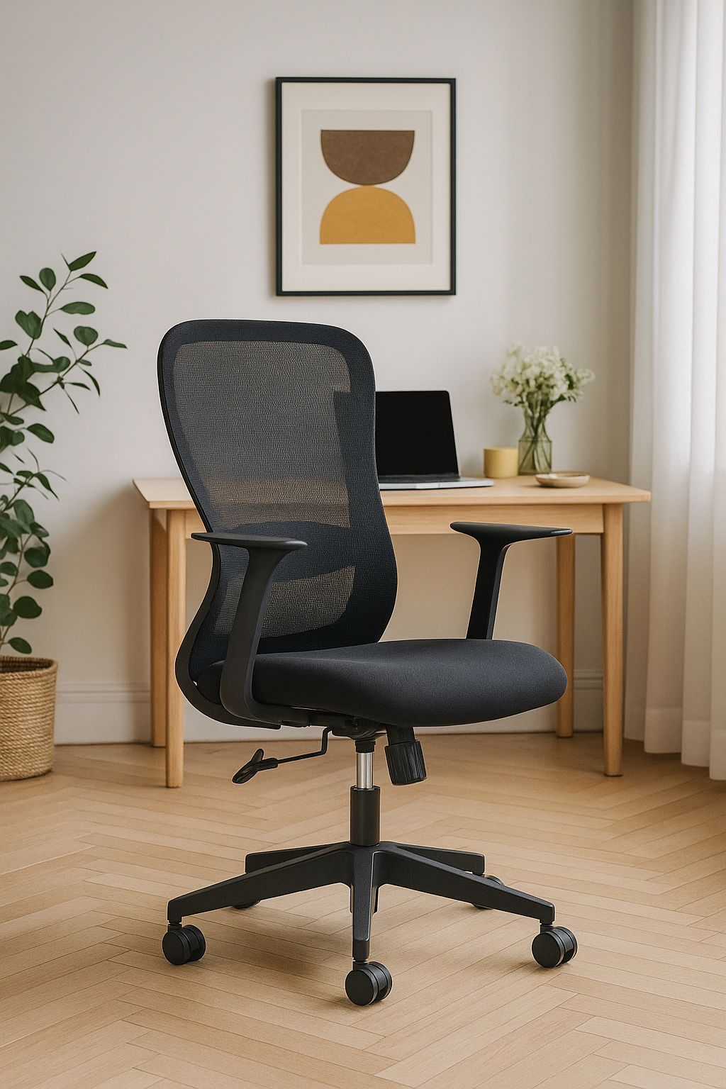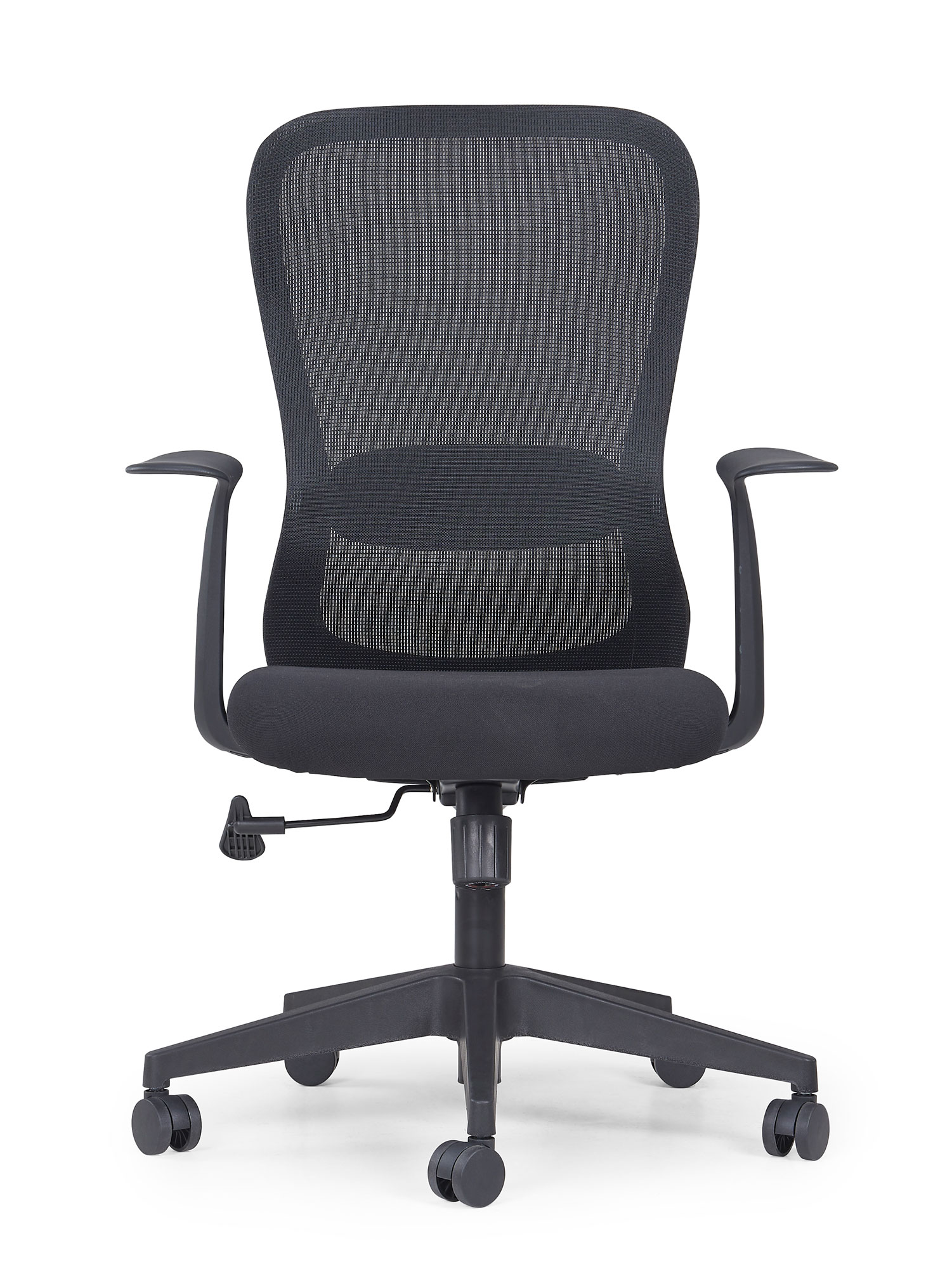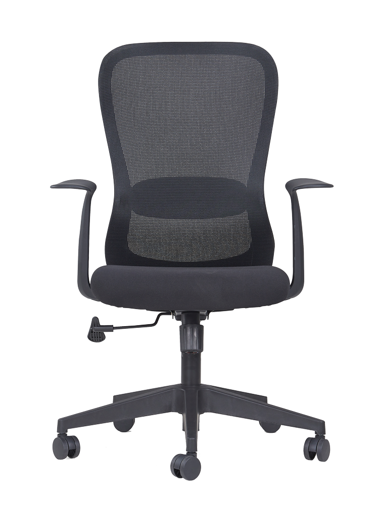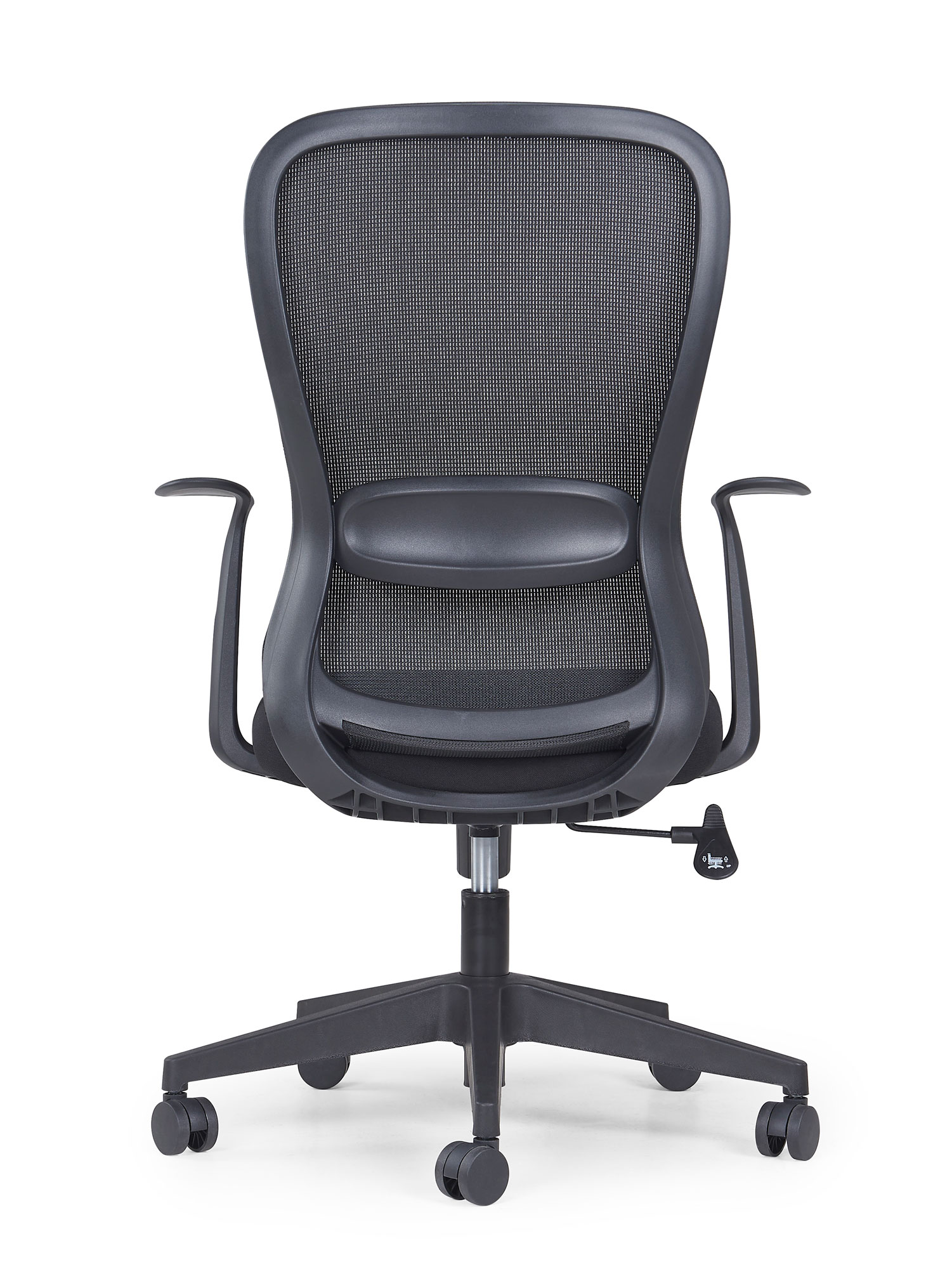 Fauteuil 200 Dossier / Accoudoirs :Dossier en résille noire avec support lombaire.Accoudoirs fixes non structurels qui peuvent être installés ou pas.Assise :Mousse moulée, revêtement tissu noir.Épaisseur de mousse : 60 mm.Densité de mousse : 35 kg/m3.Réglage / Mécanisme :Basculant centré. Blocage du dossier en position droite ou libre.Réglage de la tension de basculement grâce à la molette située sous l’assise.Vérin / Piétement / RoulettesVérin 100/40 Classe 3.Base nylon 680 mm.Roulettes en polyuréthane 50 mm. Fiche technique en PDF Fiche technique en PDF