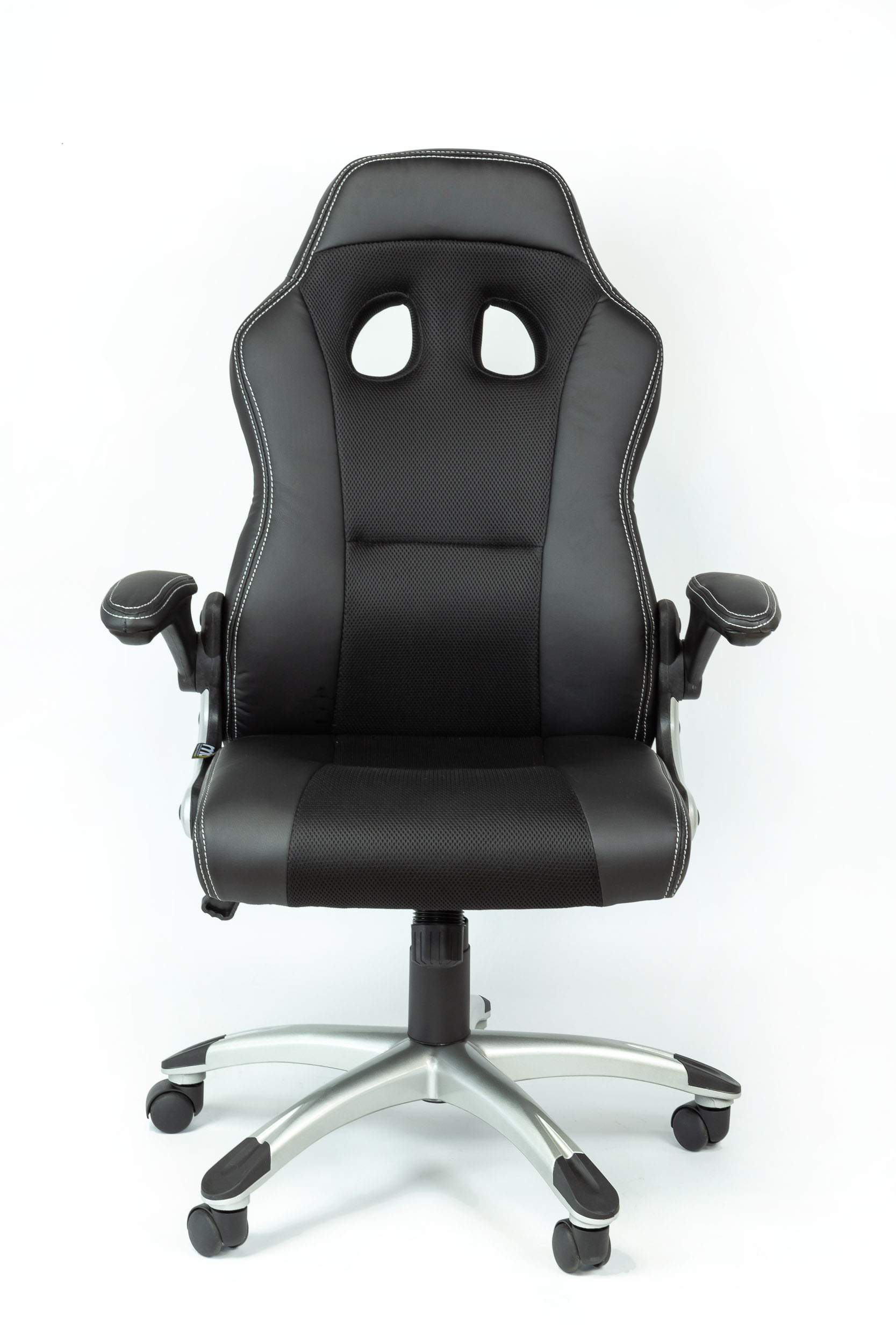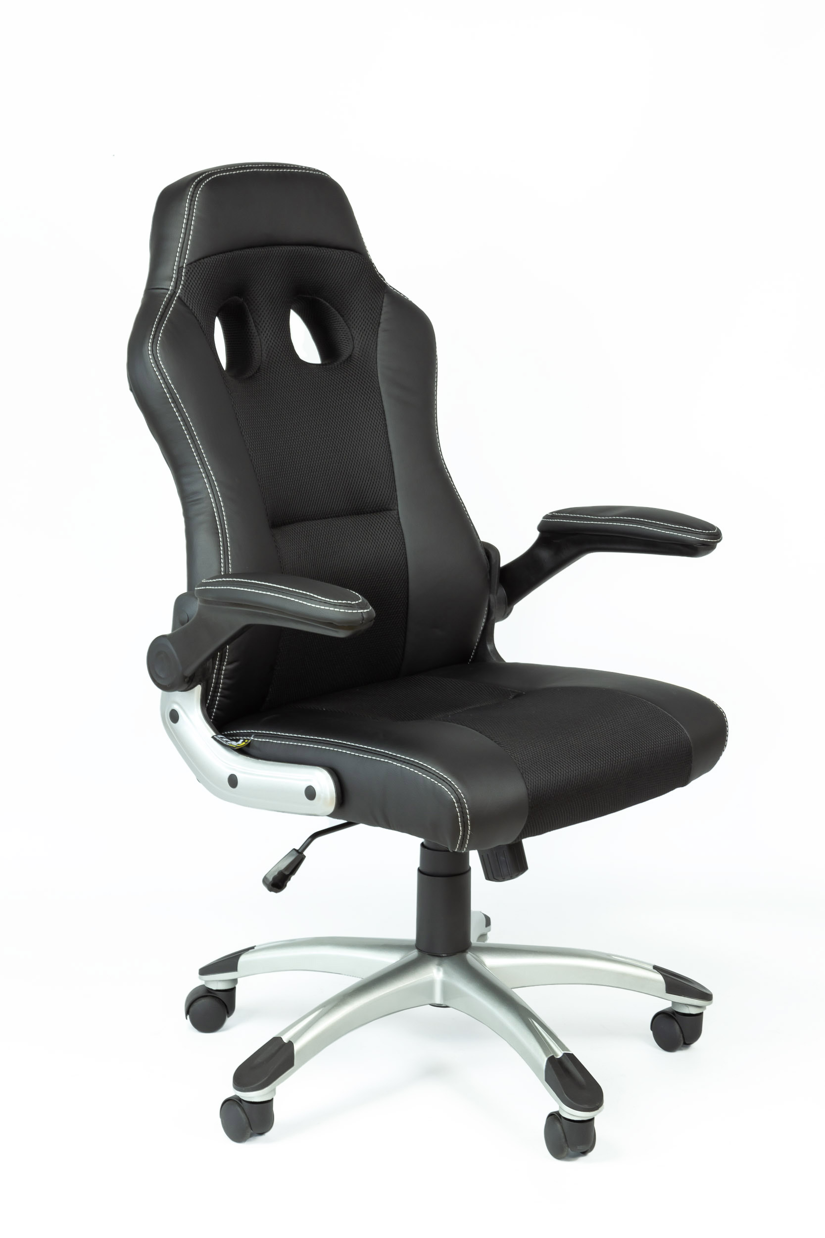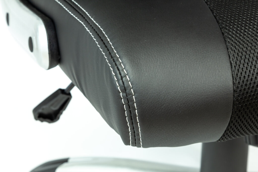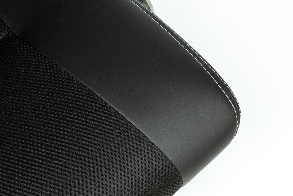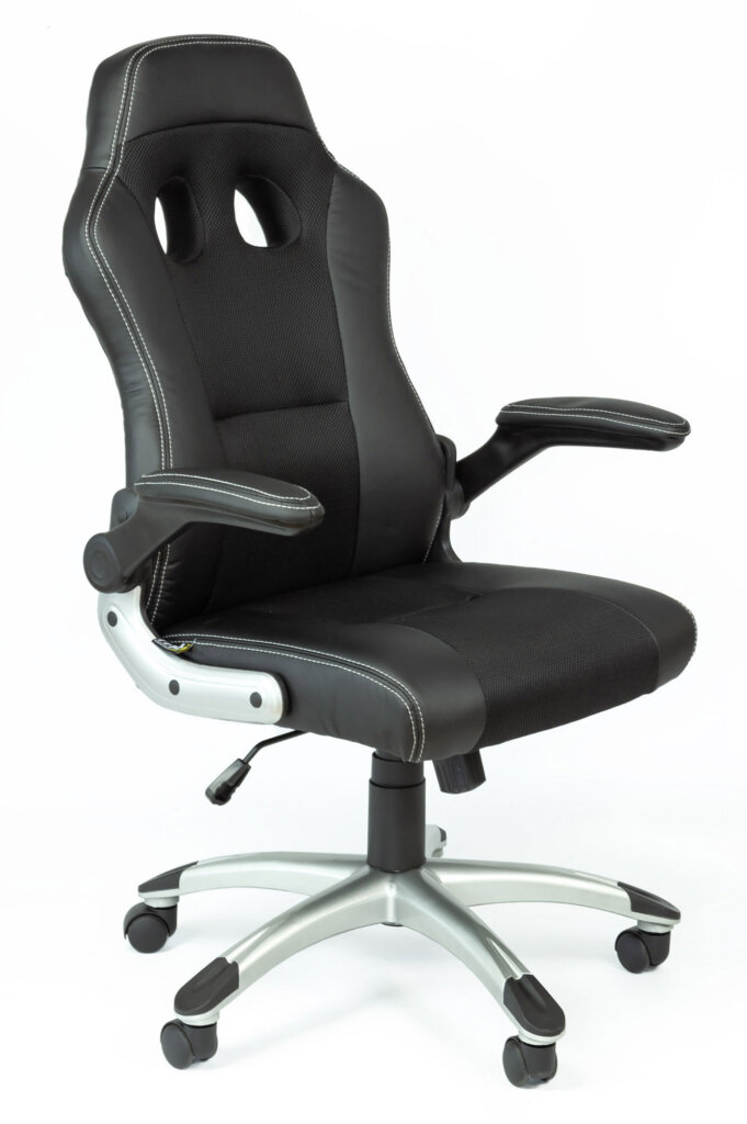 Fauteuil 284 Dossier / Accoudoirs :Dossier en polyuréthane et en tissu nid d’abeille.Couture sellier avec fil de couleur assorti au tissu nid d’abeille.épaisseur de la mousse : 55 mm.Densité de la mousse : 28 kg/m3.Accoudoirs relevables en nylon recouverts en polyuréthane. Assise :Assise en polyuréthane et tissu nid d’abeille.Epaisseur de la mousse : 70 mm.Densité de la mousse : 28 kg/m3.Peut supporter jusqu’à 110kg.Réglage / Mécanisme :Mécanisme basculant centré. Blocage du dossier en position droite ou libre.Possibilité de régler l’intensité du basculement et la hauteur du siège.Vérin / Piétement / RoulettesVérin 100/15 mm Class 3.Base en nylon 700 mm avec placage chrome. Roulettes 50 mm en nylon. Fiche technique en PDF Noir Noir/Bleu Noir/Rouge Noir/Blanc Accoudoirs relevables Fiche technique en PDF