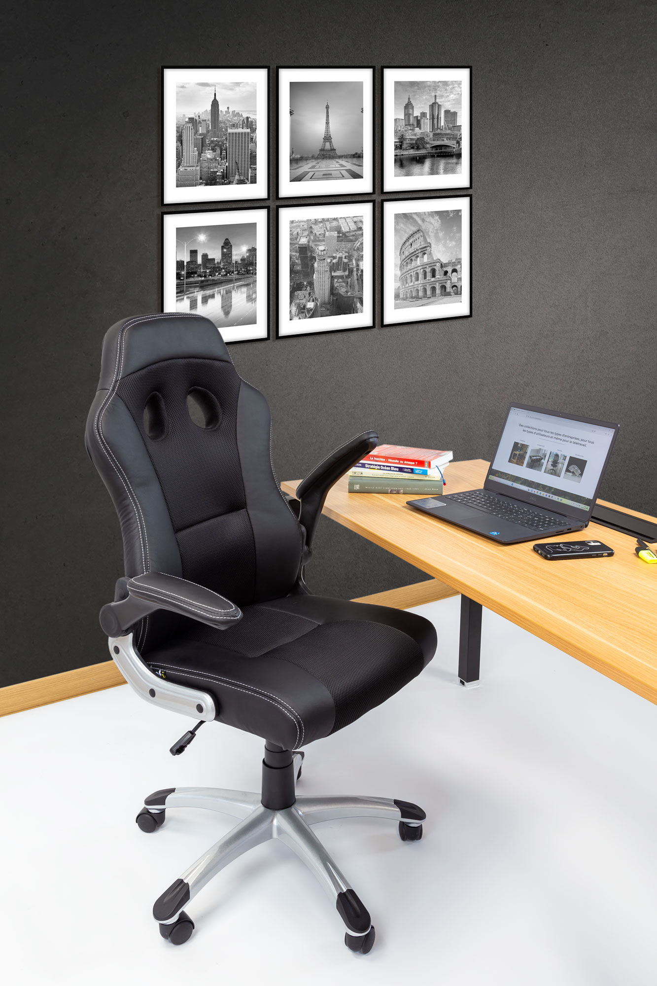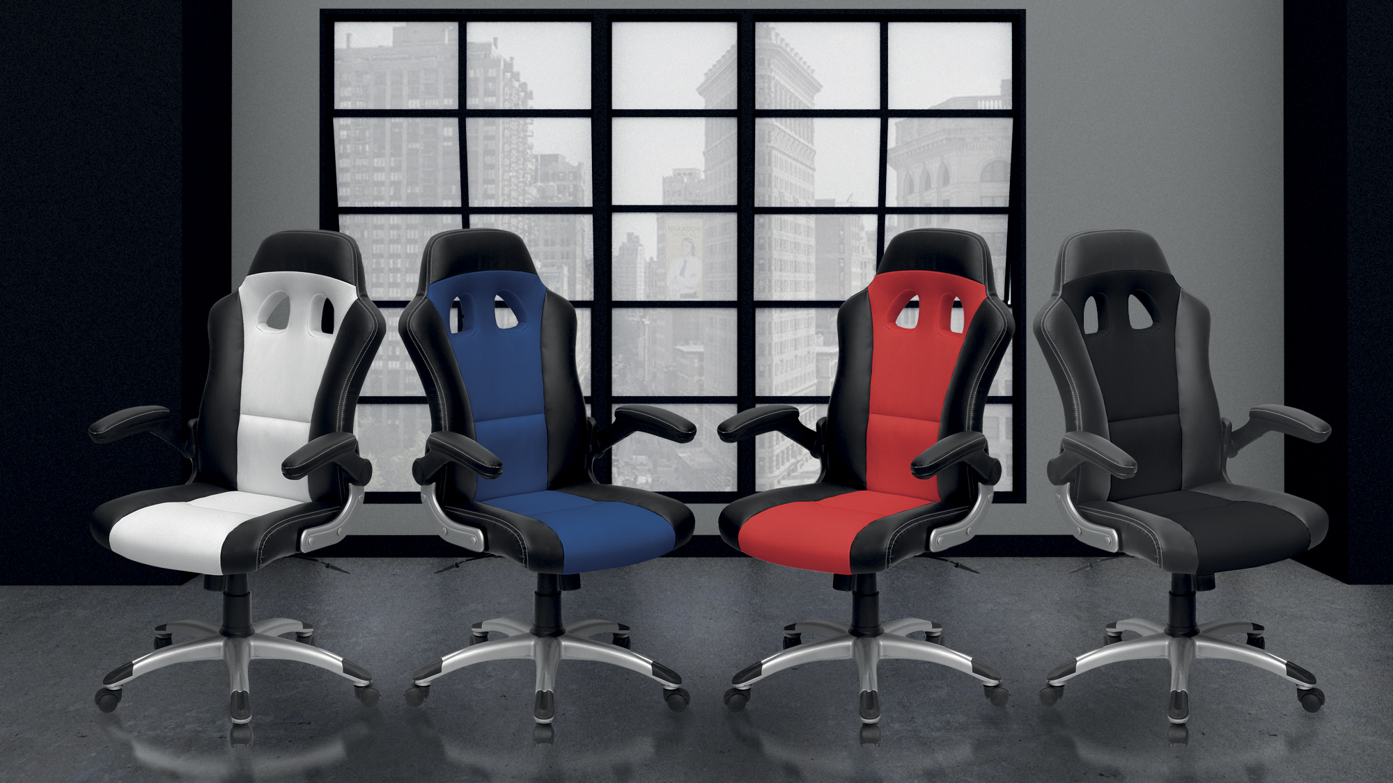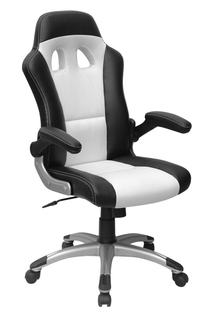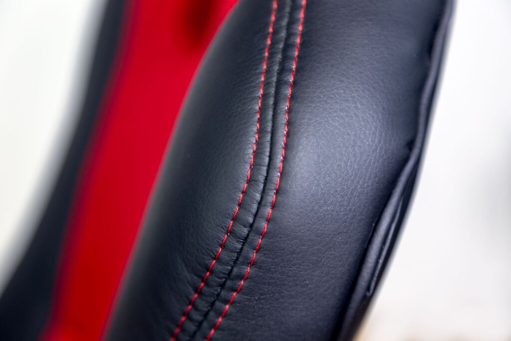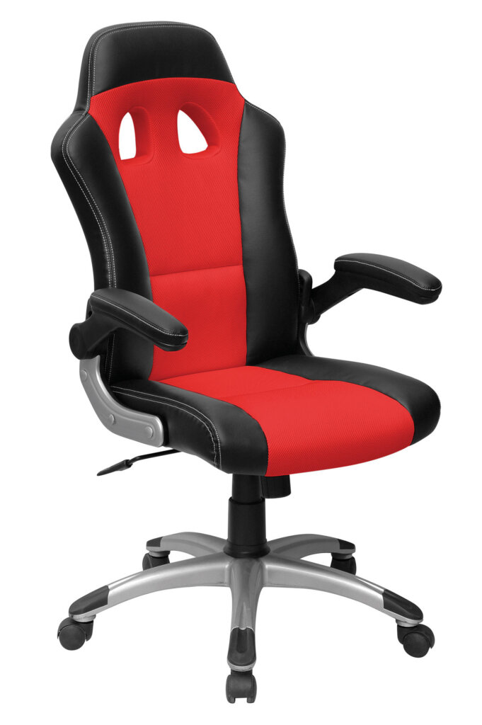 Fauteuil 284 Dossier / Accoudoirs :Dossier en polyuréthane et en tissu nid d’abeille.Couture sellier avec fil de couleur assorti au tissu nid d’abeille.épaisseur de la mousse : 55 mm.Densité de la mousse : 28 kg/m3.Accoudoirs relevables en nylon recouverts en polyuréthane. Assise :Assise en polyuréthane et tissu nid d’abeille.Epaisseur de la mousse : 70 mm.Densité de la mousse : 28 kg/m3.Peut supporter jusqu’à 110kg.Réglage / Mécanisme :Mécanisme basculant centré. Blocage du dossier en position droite ou libre.Possibilité de régler l’intensité du basculement et la hauteur du siège.Vérin / Piétement / RoulettesVérin 100/15 mm Class 3.Base en nylon 700 mm avec placage chrome. Roulettes 50 mm en nylon. Fiche technique en PDF Noir Noir/Bleu Noir/Rouge Noir/Blanc Accoudoirs relevables Fiche technique en PDF